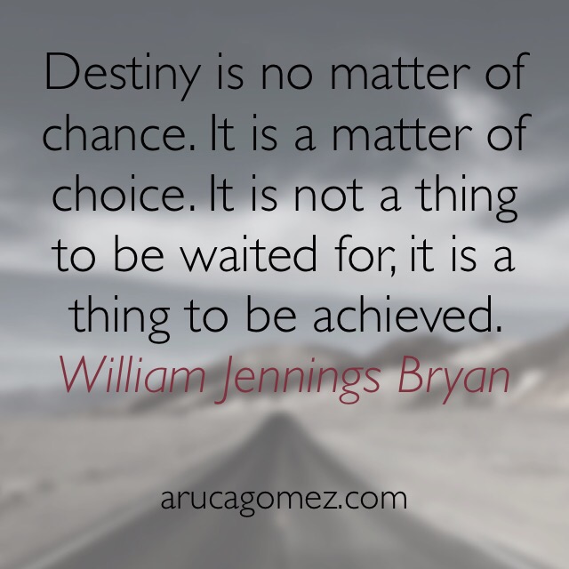 El destino no es una cuestión de oportunidad. Es una cuestión de elecciones. No es algo por lo que haya que esperar, es algo que alcanzar.