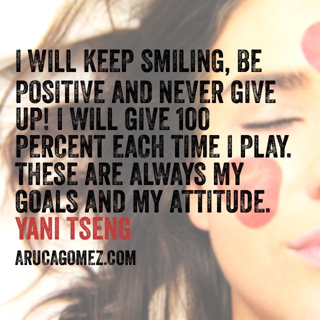 «¡ Seguiré sonriendo, siendo positivo y nunca rendirme! Doy el 100% cada vez que juego. Esos son siempre mis retos y mi actitud»