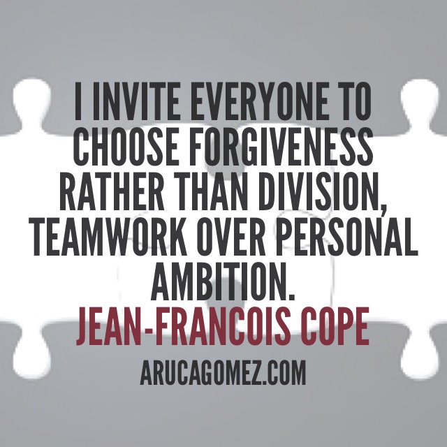«Invito a todo el mundo a elegir perdón antes que división y trabajo en equipo antes que ambición personal.»