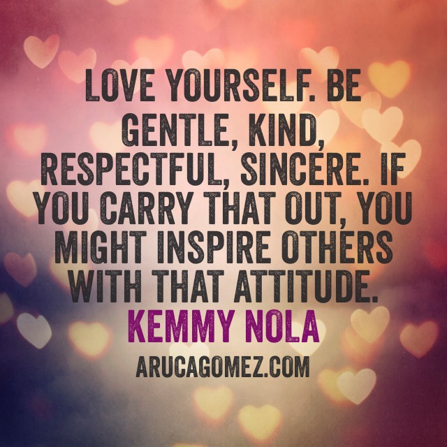 Quiérete. Sé agradable, amable, respetuoso, sincero. Si llevas todo esto contigo, es posible que inspires a otros con tu actitud.
