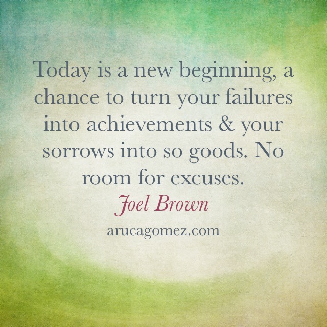 Hoy es nuevo comienzo, una oportunidad de convertir tus fallos en logros, tus penas en algo bueno. No caben excusas.