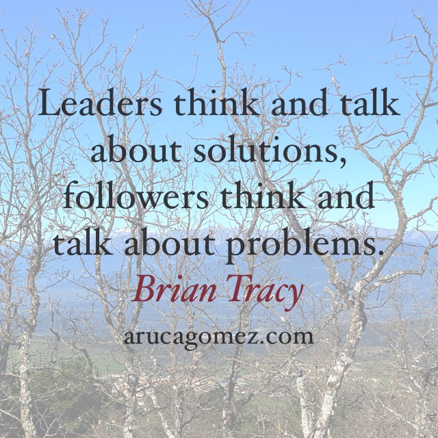 Inspiración del jueves: soluciones/ Thursday inspiration: solutions Publicado el marzo 5, 2020 por arucagomez Los líderes piensan y hablan sobre soluciones, los seguidores piensan y hablan sobre problemas.Brian Tracy ¿Sobre qué vas a pensar y a hablar hoy? ¡Lidera tu día! 😎 Help someone else! Share this:Compartir en TumblrPocketMás Haz clic para enviar un enlace por correo electrónico a un amigo (Se abre en una ventana nueva) Correo electrónico Haz clic para imprimir (Se abre en una ventana nueva) Imprimir Tweet Haz clic para compartir en Telegram (Se abre en una ventana nueva) Telegram Haz clic para compartir en WhatsApp (Se abre en una ventana nueva) WhatsApp EntradaMe gusta Cargando...