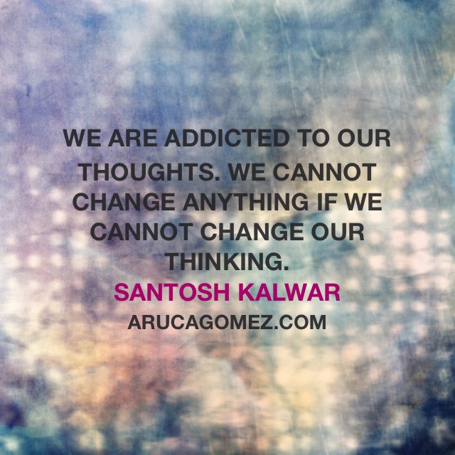 Somos adictos a nuestros pensamientos. No podemos cambie nada en nosotros si no cambiamos lo que pensamos. Santos Kalwar ¿Has penando sobre esto alguna vez? ¿Sabes que no eres lo que piensas? Cada vez que te descubras pensando en algo apunta lo que es. Empezarás a saber muchas cosas de ti que ahora te pasan desapercibidas.