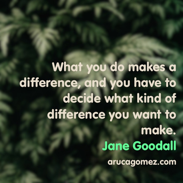 Inspiración del miércoles: diferencia/ Wednesday inspiration: difference Publicado el julio 15, 2020 por arucagomez Lo que haces marca la diferencia y tienes que decidir qué clase de diferencia quieres marcar.Jane Goodall¿Sabes cuál es la tuya?¡Empieza hoy!💪🏻 Help someone else! Share this:Compartir en TumblrPocketMás Haz clic para enviar un enlace por correo electrónico a un amigo (Se abre en una ventana nueva) Correo electrónico Haz clic para imprimir (Se abre en una ventana nueva) Imprimir Tweet Haz clic para compartir en Telegram (Se abre en una ventana nueva) Telegram Haz clic para compartir en WhatsApp (Se abre en una ventana nueva) WhatsApp EntradaMe gusta Cargando...