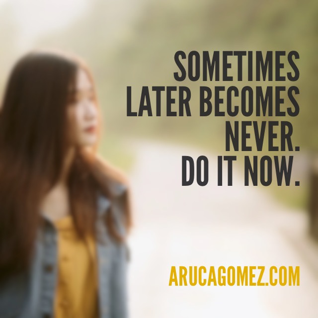 Inspiración del miércoles: ahora/ Wednesday inspiration: now Publicado el octubre 28, 2020 por arucagomez Algunas veces más tarde ser convierte en nunca. Hazlo ahora ¡ a por un día único con ganas! Help someone else! Share this:Compartir en TumblrPocketMás Haz clic para enviar un enlace por correo electrónico a un amigo (Se abre en una ventana nueva) Correo electrónico Haz clic para imprimir (Se abre en una ventana nueva) Imprimir Tweet Haz clic para compartir en Telegram (Se abre en una ventana nueva) Telegram Haz clic para compartir en WhatsApp (Se abre en una ventana nueva) WhatsApp EntradaMe gusta Cargando...