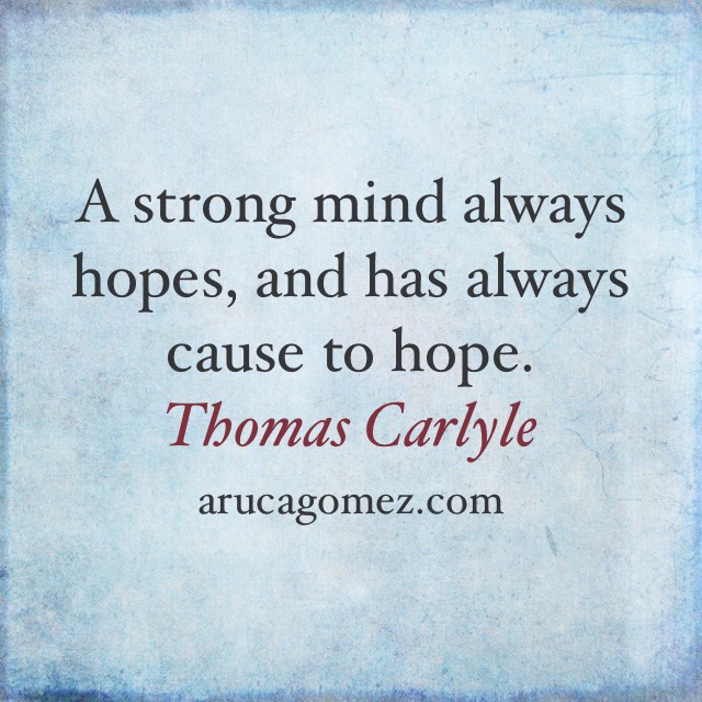 Inspiración del martes: esperanza/ Tuesday inspiration: hope Publicado el marzo 16, 2021 por arucagomez Una mente fuerte siempre tiene esperanza y causa para ella. Thomas Carlyle ¿Es tu mente fuerte? Help someone else! Share this:Compartir en TumblrPocketMás Haz clic para enviar un enlace por correo electrónico a un amigo (Se abre en una ventana nueva) Correo electrónico Haz clic para imprimir (Se abre en una ventana nueva) Imprimir Tweet Haz clic para compartir en Telegram (Se abre en una ventana nueva) Telegram Haz clic para compartir en WhatsApp (Se abre en una ventana nueva) WhatsApp EntradaMe gusta Cargando...