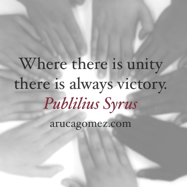Inspiración del lunes: unidad/ Monday inspiration: unity Publicado el marzo 29, 2021 por arucagomez Donde hay unidad siempre hay victoria. Publius Syrus ¿Qué vas a hacer por seguir unidos hoy? Help someone else! Share this:Compartir en TumblrPocketMás Haz clic para enviar un enlace por correo electrónico a un amigo (Se abre en una ventana nueva) Correo electrónico Haz clic para imprimir (Se abre en una ventana nueva) Imprimir Tweet Haz clic para compartir en Telegram (Se abre en una ventana nueva) Telegram Haz clic para compartir en WhatsApp (Se abre en una ventana nueva) WhatsApp EntradaMe gusta Cargando...