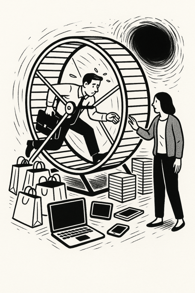 Vamos tan rápido que no reparamos en la rueda en la que estamos. Buscamos constantemente un mejor trabajo, ganar un mejor sueldo, todo para comprar más cosas o hacer más cosas. Pero cada vez más en solitario.