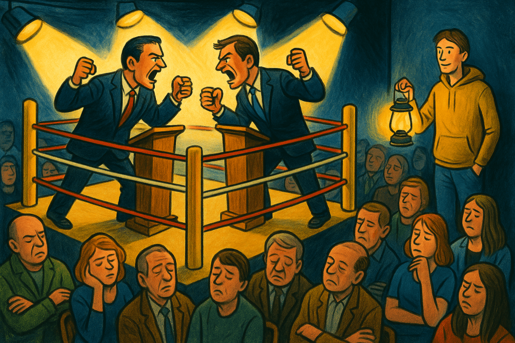 La política española, por desgracia, como si fuese una maldición a la que hay que resignarse, hace tiempo que no nos ofrece verdaderos liderazgos. Nos empuja, una y otra vez, a elegir lo menos malo. Hasta que la corrupción o el desgaste hacen caer al partido en el poder, y otro cualquiera, en el extremo contrario, toma su lugar. Se reinicia el ciclo. Sin ilusión. Sin ideas. Con discursos vacíos trufados de alarmismo, frases enlatadas y estrategias de marketing carísimas.