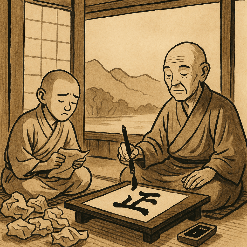 El maestro sonrió, tomó un pergamino limpio, respiró una sola vez, y con mano firme escribió el carácter. Ni lento ni rápido. Sin dudar. Luego miró a Riku: