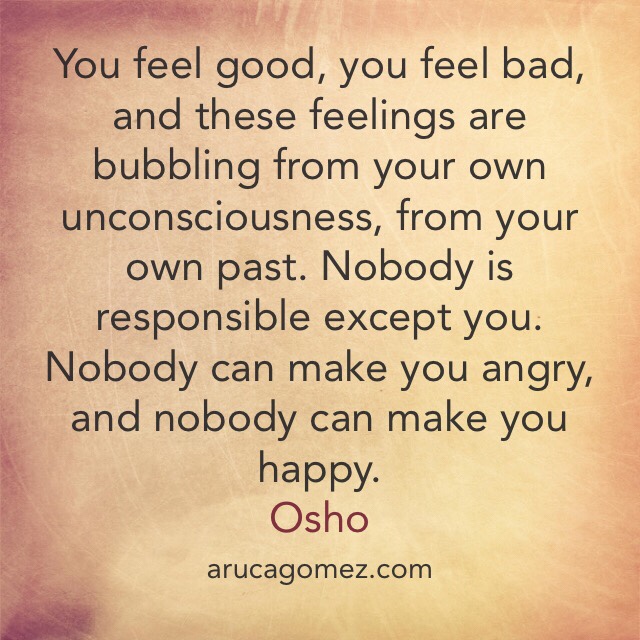 «Te sientes bien, te sientes mal y estos sentimientos brotan de tu propia conciencia, de tu propio pasado.Nadie es responsable de ello más que tú. Nadie puede hacerte enfadar y nadie puede hacerte feliz»