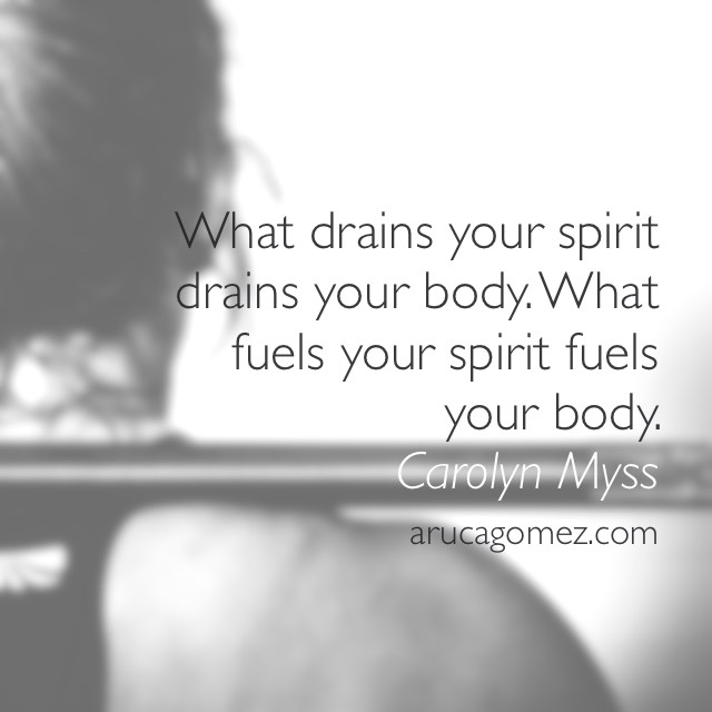 Lo que agota tu espíritu, agota tu cuerpo. Lo que alimenta tu espíritu, alimenta tu cuerpo.