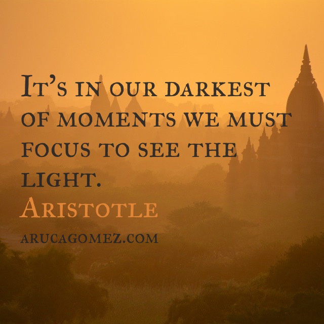 Es en nuestros momentos más oscuros cuando debemos concentrarnos para ver la luz. Aristóteles Busca la luz en tu día e ilumina con ella la vida de cuántas personas puedas… Te envío toda la energía que vas a necesitar 😉