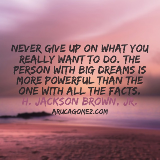 Nunca te rindas con lo que quieras conseguir. Las personas con grandes sueños son más poderosas que las que tienen todos los hechos.