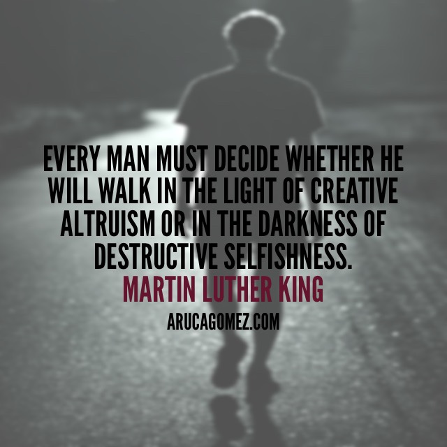 Toda persona debe decidir si caminará en la senda del altruismo creativo o en la oscuridad del egoísmo destructivo.